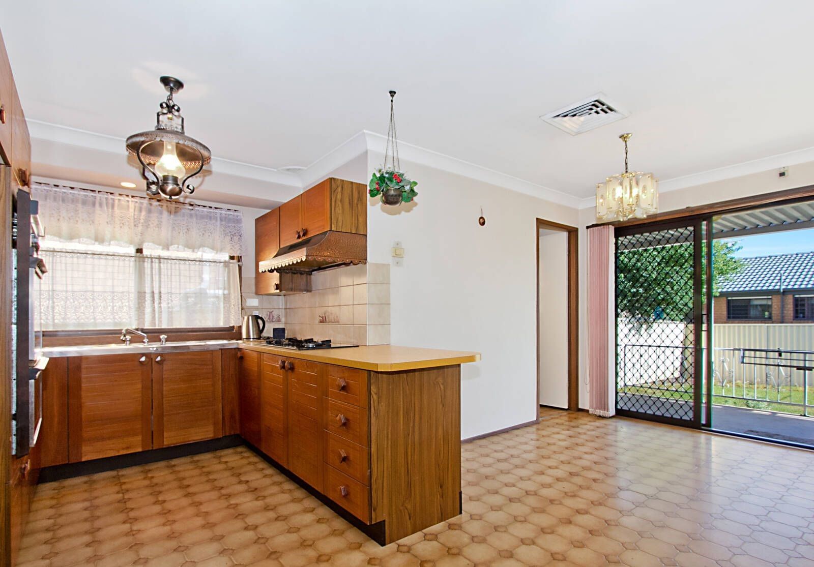 Kitchen with ample cupboard space, Gas cooktop,